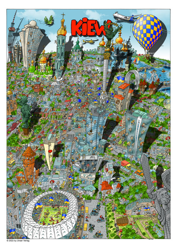 Wir spenden die Gewinne aus dem Verkauf des Kiew-Posters an das Deutsche Rote Kreuz für die Hilfe in der Ukraine.